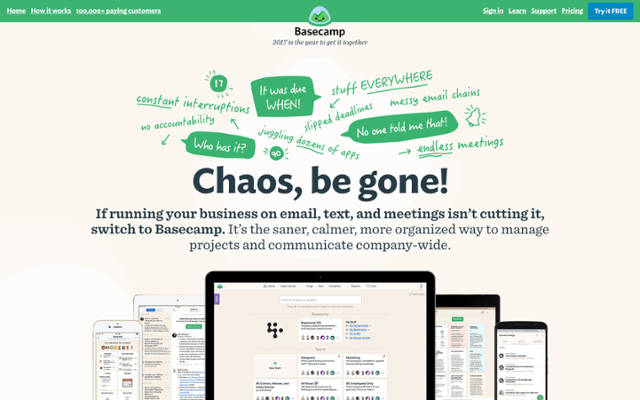 Basecamp has marketed its project management software with an eye towards the jobs-to-be-done framework. But once users are inside the product, they receive helpful tips on how to use the software.