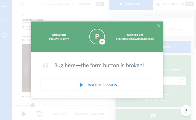 “Share” allows you to leave notes within specific user sessions, and quickly send them to your team.