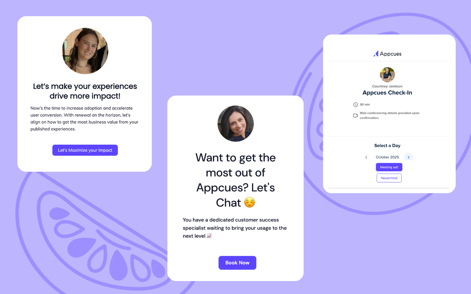 Every CSM at Appcues has access to build and publish their own targeted in-app messages. It’s a quick, low-lift approach that helps them stay in front of the right people with timely, account-specific outreach—especially when email isn’t getting a response.